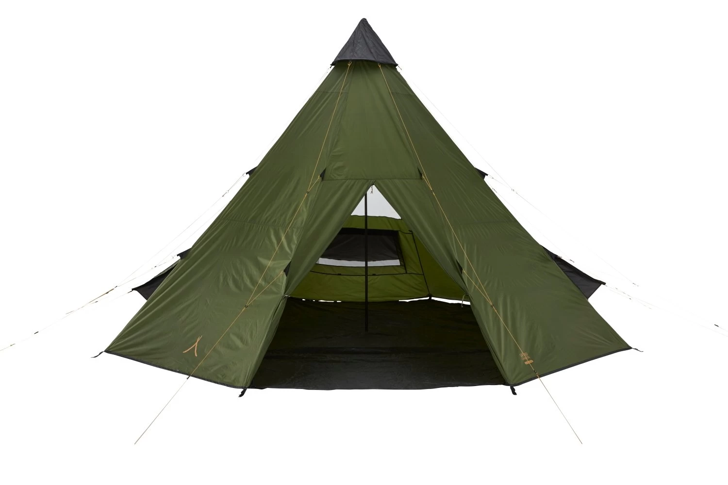 BLACK FALLS 8 ist ein traditionelles Zelt im Tipi-Stil, besteht jedoch aus modernen Materialien für einen leichten und einfachen Transport. Es lässt sich sehr einfach aufbauen – Zelt ausbreiten, Stange einstecken und im Boden befestigen. Schon ist der Schlafbereich für bis zu 8 Personen oder der Gruppentreffpunkt fertig. Die separate Bodenplane schützt vor Schmutz und Schlamm, kann jedoch auch zu Hause gelassen werden, wenn sie nicht benötigt wird. Die großen Belüftungsöffnungen mit Abdeckung und die Moskitonetze auf der Außenplane sorgen für eine hervorragende Luftzirkulation und ein angenehmes Raumklima im Innenzelt.