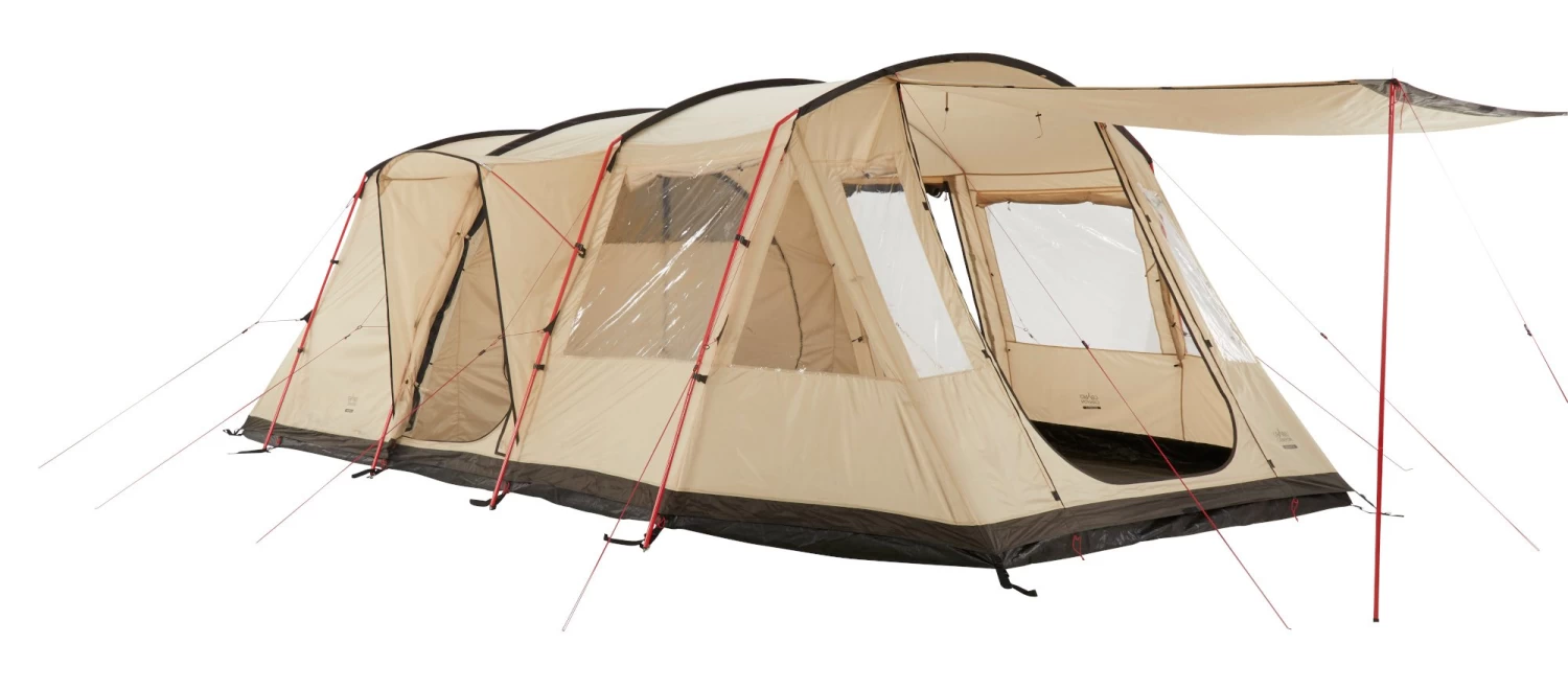 Das größte Familien- und Gruppenzelt der Grand Canyon Kollektion! Die Stangen des Dolomiti 6 Tunnelzelts sind bereits gebogen, daher sind die Seitenwände beinahe senkrecht. Dies sorgt für ein hervorragendes Raumgefühl. Mit zwei separaten Schlafbereichen – beide mit Platz für drei Personen und mit ausreichend Stauraum für Gepäck und Ausrüstung. Die große Apsis ist durchgängig 2,10 Meter hoch und bietet Platz zum gemütlichen Zusammensitzen – auch in größeren Gruppen. Große abgedeckte Belüftungsöffnungen auf der Außenplane sorgen für eine angenehme Luftzirkulation und ein gutes Raumklima im Zelt, viele Fenster lassen Tageslicht ins Zelt.